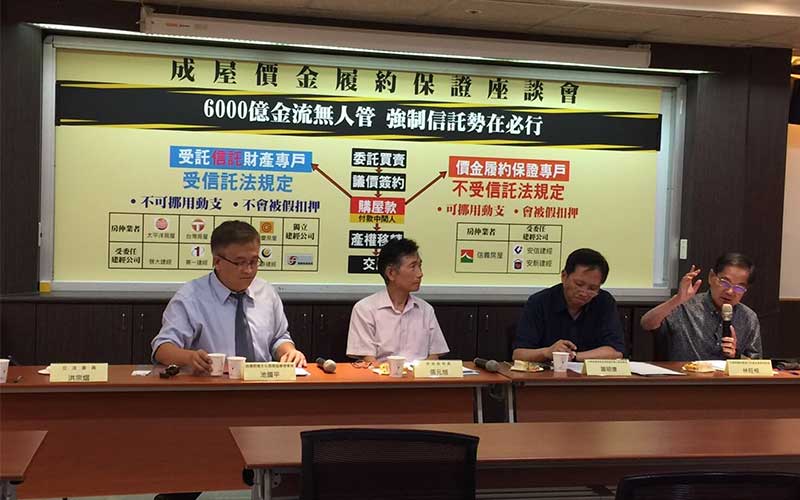 台灣前進文化發展協會提出兩點訴求,一:成屋比照預售.屋強制履約保證。二:履約保証